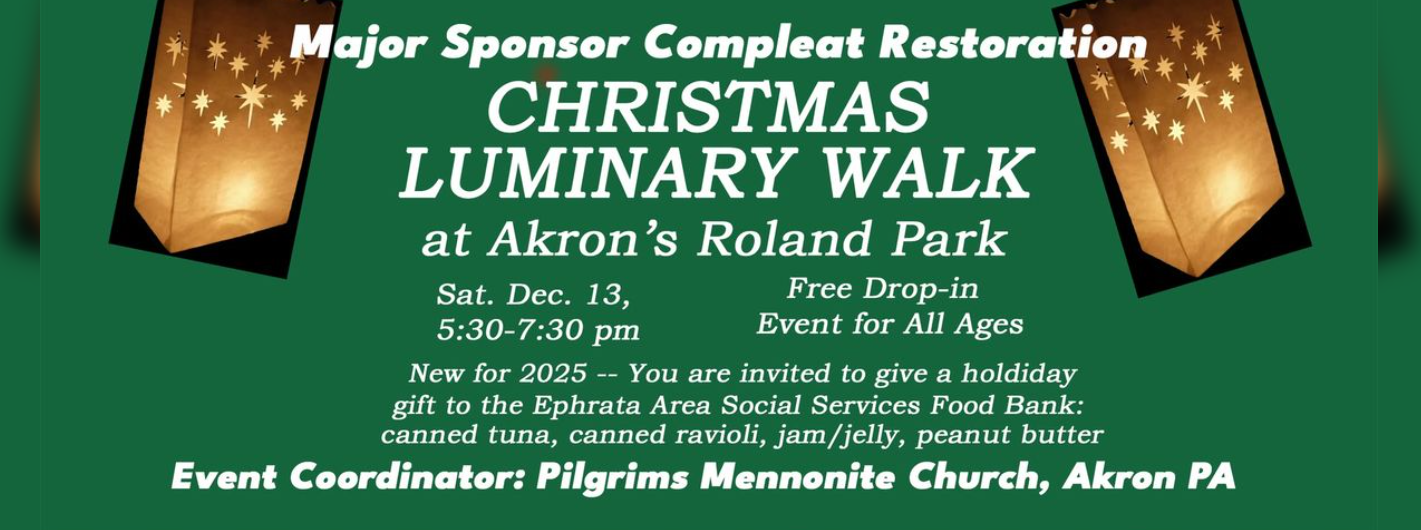 Free Christmas Luminary Walk on Sat, Dec. 13th at Akron’s Roland Park. Drop in between 5:30 and 7:30PM for a delightful walk through the Roland Pines woods.